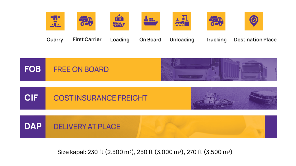 Untuk proyek yang melibatkan pelabuhan, jetty, atau area logistik, kami menyediakan supply batu pecah dan sistem pengiriman yang disesuaikan dengan kebutuhan operasional dan metode bongkar muat di lapangan.